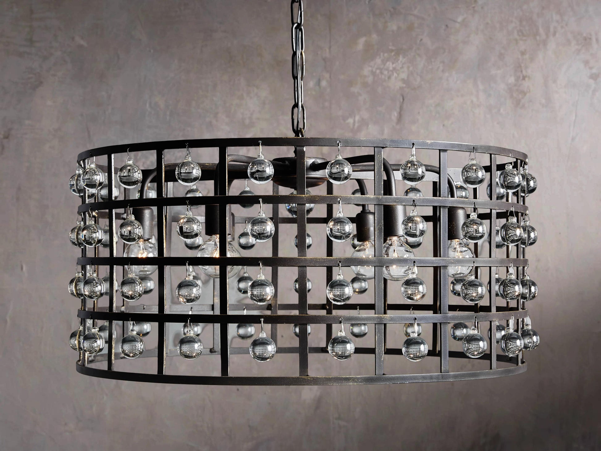 Meta Description A dramatic industrial-chic chandelier featuring an Italian-crafted iron cage frame with a timeworn patina and Italian crystal spheres. Its molten candle-like glow and water-drop effect are ideal for boutique restaurants, hotel homestays, and expressive interior spaces.